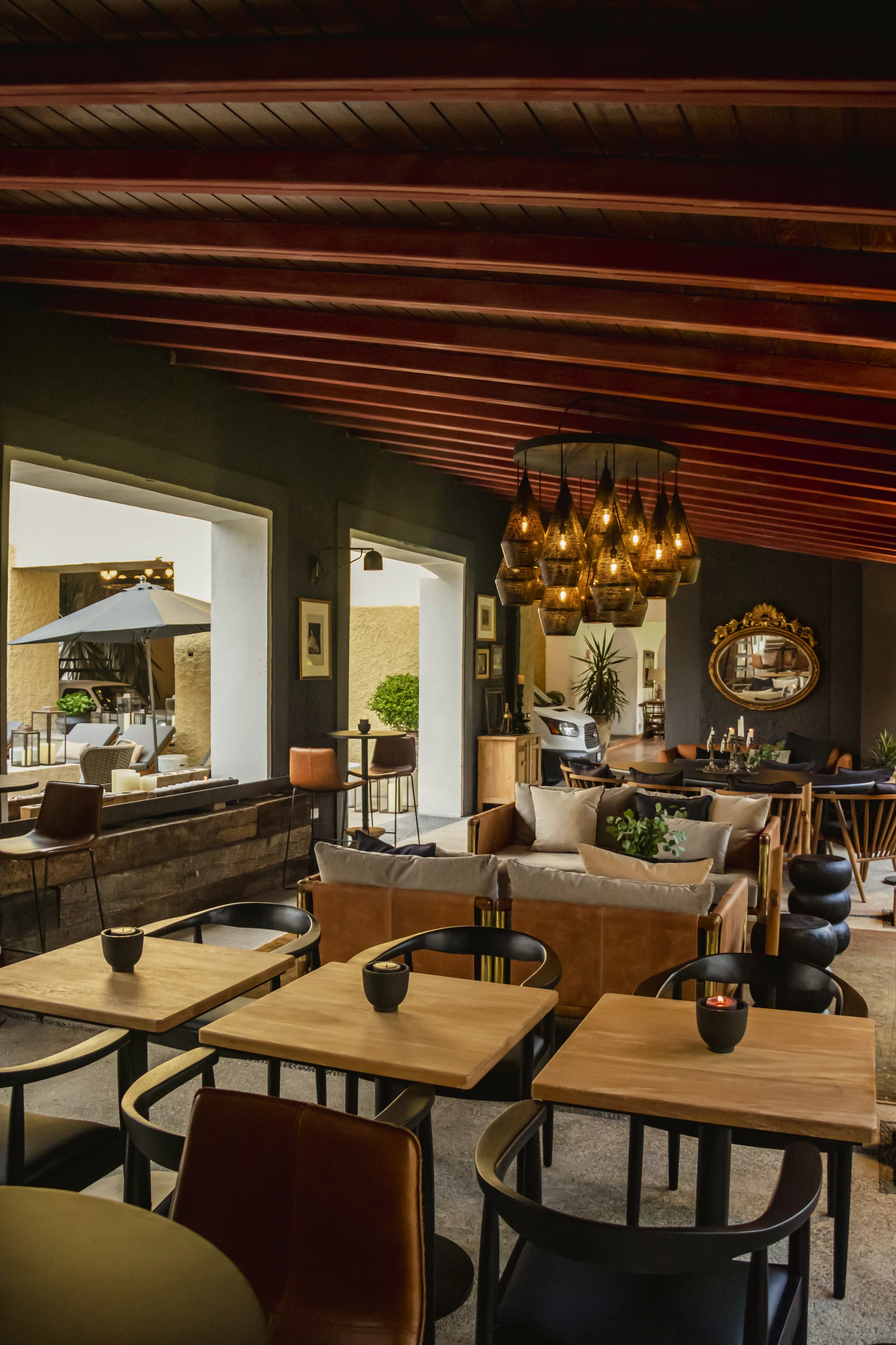 El diseño interior se caracteriza por el uso de maderas naturales, tonos cálidos y una iluminación cuidadosamente estudiada que aporta profundidad y carácter al espacio. El mobiliario de líneas sobrias se combina con textiles confortables y piezas decorativas seleccionadas, logrando un balance entre lo contemporáneo y lo artesanal que refuerza la identidad del bar.