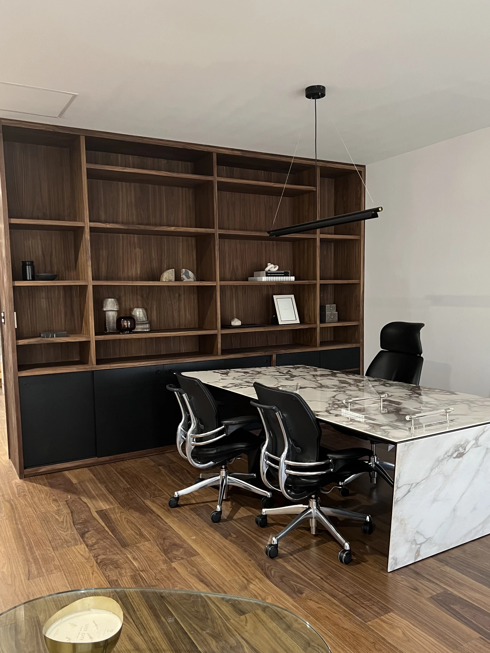 Este proyecto de oficinas corporativas fue concebido para reflejar una identidad contemporánea, sobria y profesional, alineada con los valores de la empresa y con las nuevas formas de trabajo. El diseño prioriza la claridad visual, la armonía de materiales y una atmósfera equilibrada que transmite confianza, orden y bienestar desde el primer contacto con el espacio.