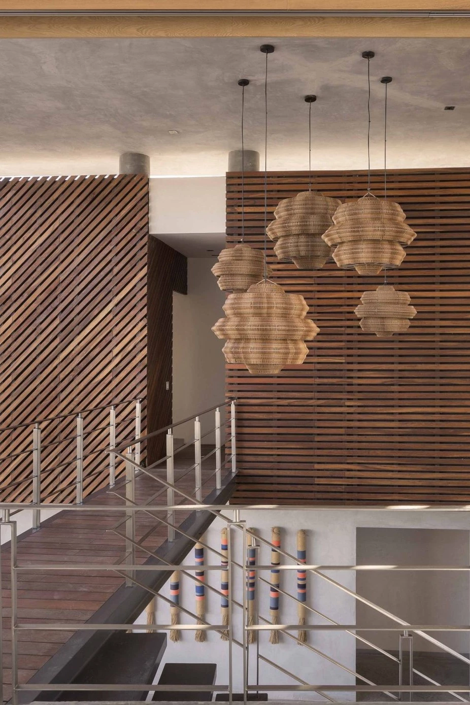 Los elementos de diseño son parte esencial de cada proyecto, y en Las Olas las lámparas colgantes fueron un reto y una satisfacción: piezas protagonistas que aportan carácter, movimiento y un guiño artesanal que transforma el comedor. Además, se diseñó un rincón personal para la dueña, un pequeño espacio donde pudiera guardar sus materiales creativos y dejar que su mente se expandiera sin prisa. Tiempo después, al regresar, fue evidente cómo el espacio había hecho lo suyo: no solo se habitaba distinto, también ella se sentía distinta—más ligera, más presente, más ella.